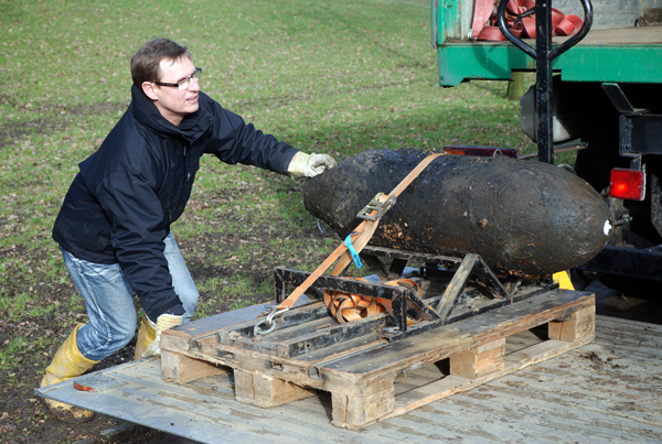 Bei der Flächenuntersuchung, die immer vor den Neupflanzungen vorgenommen wird, entdeckten die Experten am 13. Februar eine 250 kg schwere Fliegerbombe in der Nähe der Parkverwaltung.