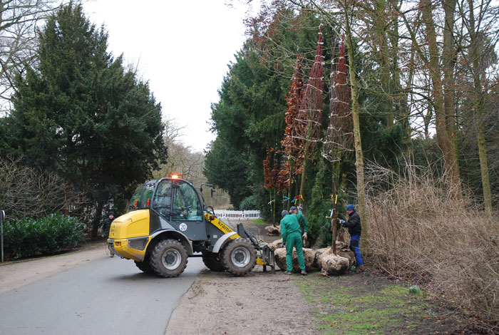 Nach den leider erforderlichen Fällmaßnahmen in den vergangenen Wochen ist in diesen Tagen die erste Lieferung von insgesamt rd. 70 Spenderbäumen für 2015 im Bürgerpark eingetroffen.
