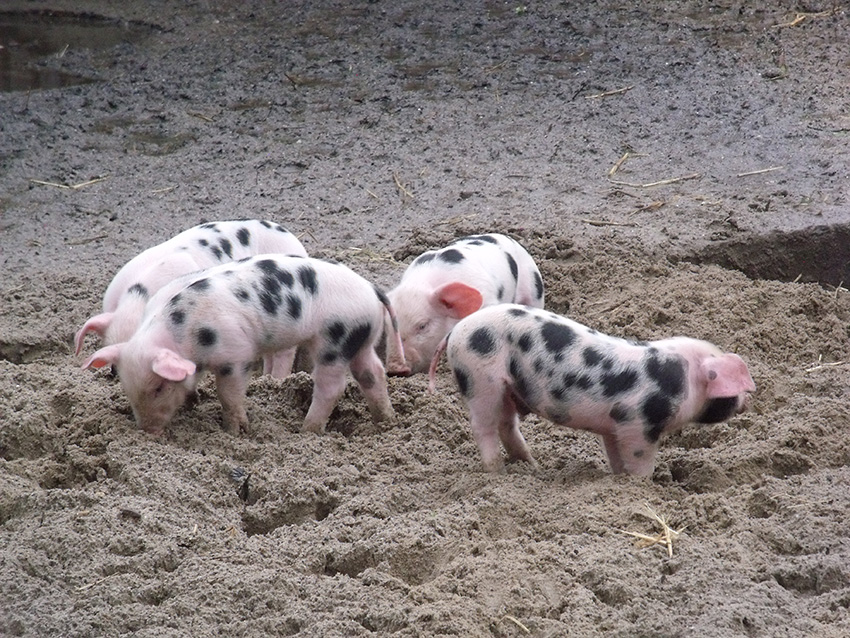 Nachdem unsere Bentheimer Sau Bonnie Ende letzten Jahres Nachwuchs bekommen hatte, hat jetzt Sau Bernadette 7 kleine Bentheimer zur Welt gebracht, die jeden Sonnenstrahl nutzen, um in ihrem Gehege herumzutollen.