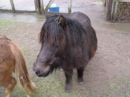 Das Gehege neben den Eseln wird seit einigen Wochen von zwei Shetland Ponys bewohnt. Diese robuste Ponyrasse ist in Schottland beheimatet und wird bis zu 40 Jahre alt. Während der industriellen Revolution wurden sie auf dem Britischen Festland oft als Grubenponys im Bergbau eingesetzt.