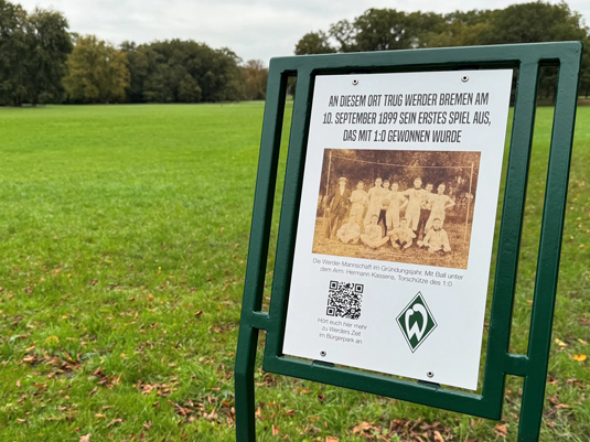 Am 4. Februar 1899 wurde der Fußball-Verein „Werder“ auf der Veranda des „Kuhhirten“ ins Leben gerufen – nun blickt der Club bereits auf 126 Jahre Geschichte zurück. Am vergangenen Samstag wurde im Bremer Bürgerpark eine Infotafel enthüllt, die an das allererste Spiel des Vereins erinnert.